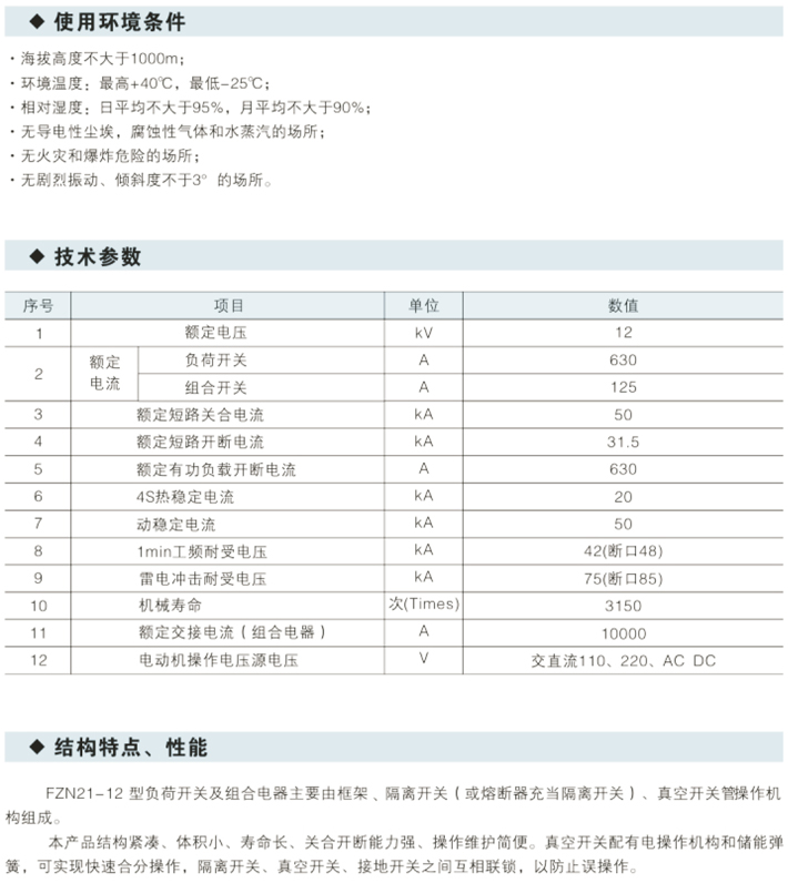 FZ(R)N16A-12系列户内高压真空负荷开关(熔断器组合电器)