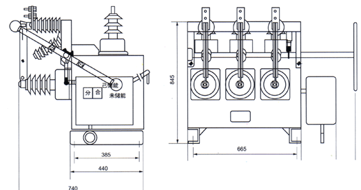 ZW10-12型户外真空断路器外形及安装尺寸: