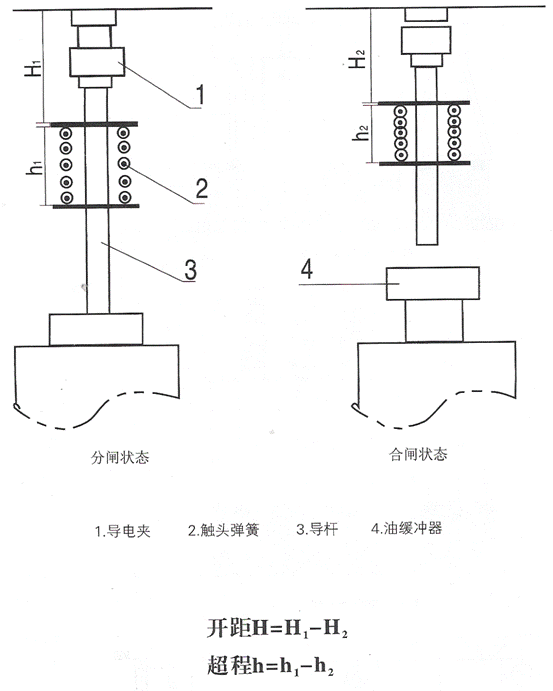 2.4传动机构,包括绝缘拉杆,拐臂及导杆,调整绝缘拉杆和导杆的长度,可以调整开关的开距和超程。