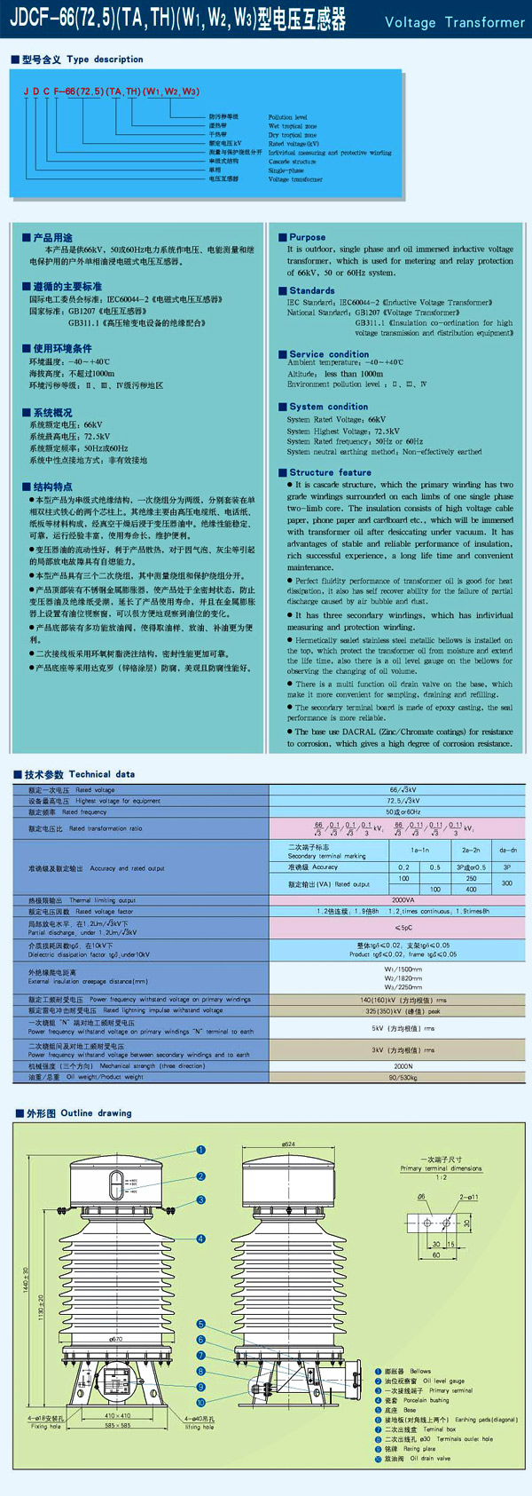 JDCF-66KV电压互感器