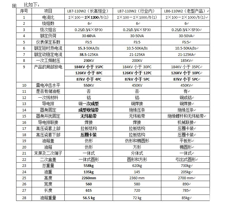 LB7-110W2新型油纸绝缘电流互感器与LB6-110W2油纸绝缘电流互感器的对比如下: