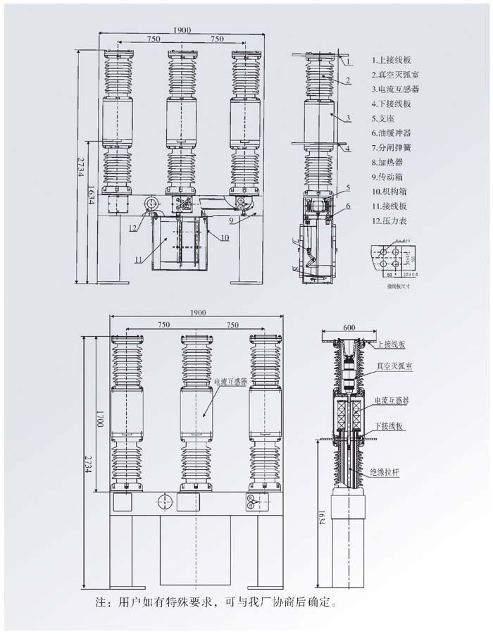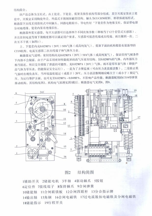1、采用真空灭弧室,用SF6气体作为辅助绝缘介质,配弹簧操动机构,实现了全无油化;