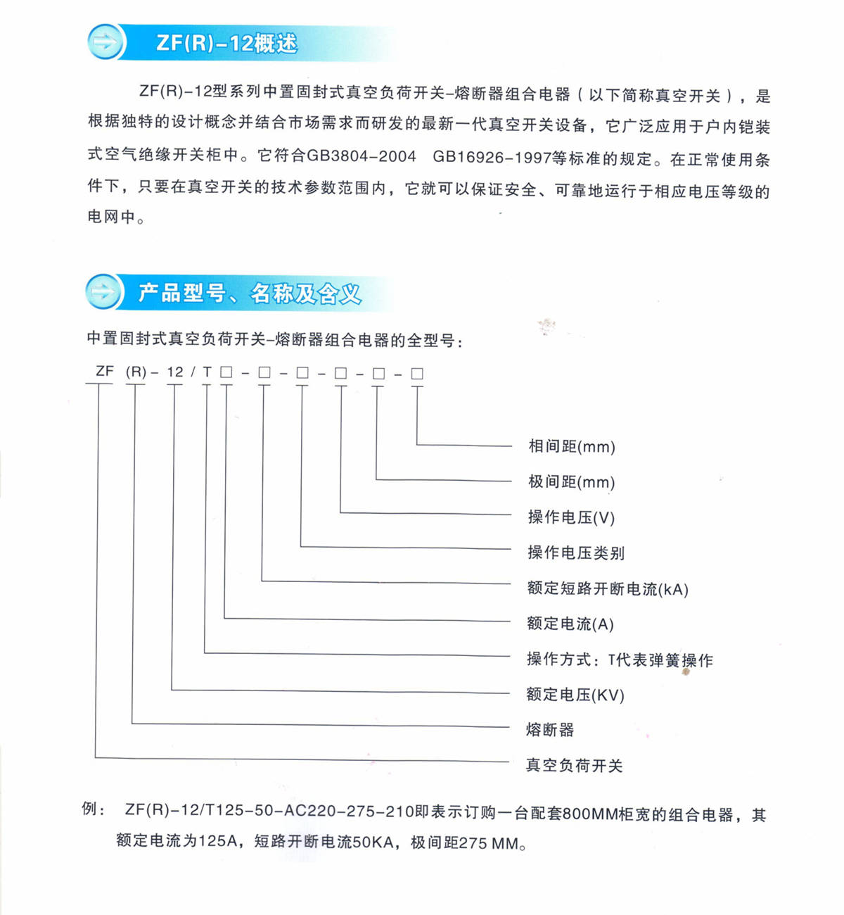 ZF(R)-12型系列中置固封式真空负荷开关-熔断器组合电器