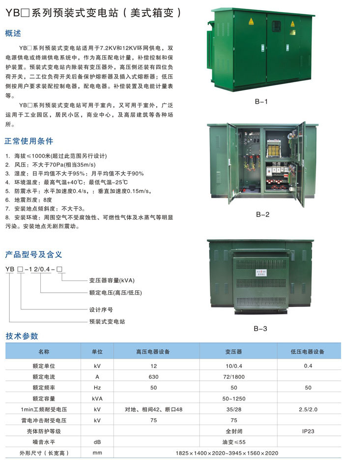 YB紧凑型美式箱变 路灯箱变 隧道箱变
