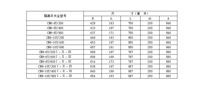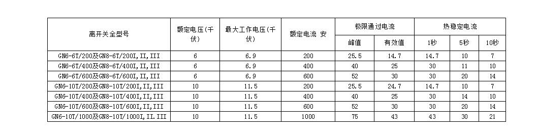注:当海拔高度超过1000米,或环境温度于+40℃,应遵守GB311-64"高压电气设备绝缘试验电压和试验方法"和GB763-74"交流高压电器在长期工作时的发热"等标准的规定使用此种隔离开关。