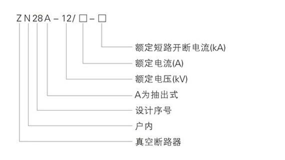 ZN28-12型户内真空断路器型号含义: