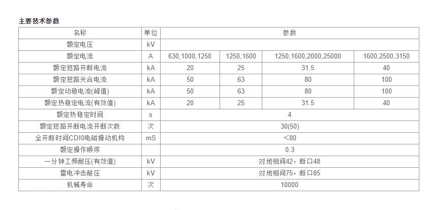 ZN28-12型户内真空断路器技术参数: