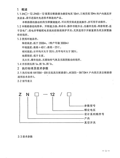 ZN65-12户内真空断路器